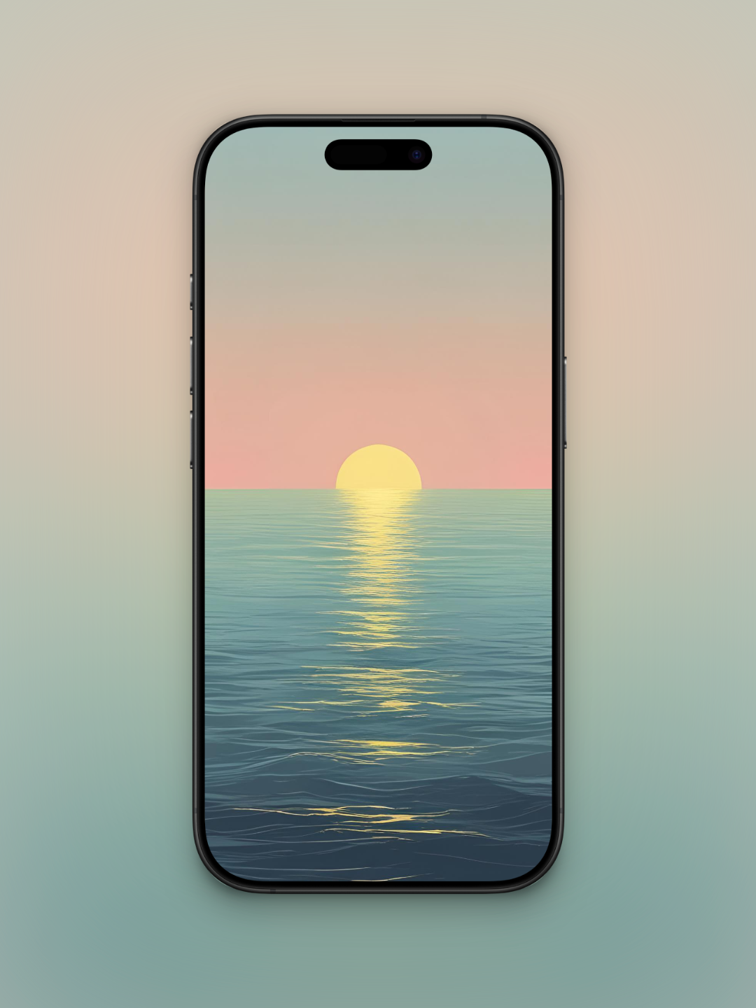 Su diseño, simple pero impactante, muestra un sol dorado al borde del océano, con un cielo relajante y degradado como fondo. Este fondo de pantalla de alta definición ofrece una estética elegante y minimalista para cualquier pantalla.